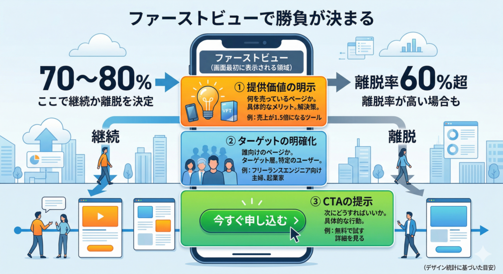 ユーザーの70〜80%は、ファーストビュー(画面最初に表示される領域)だけで