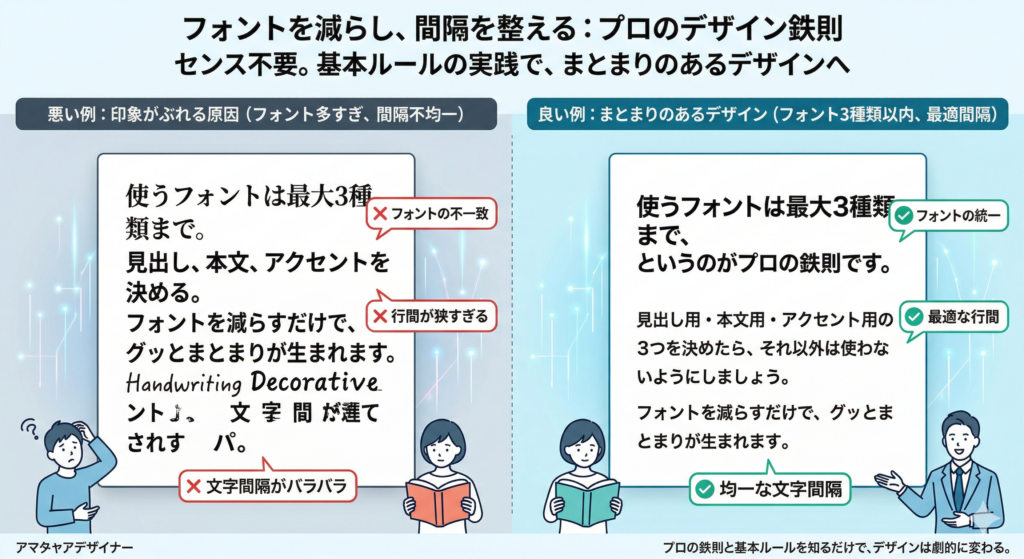 使うフォントは最大3種類まで、というのがプロの鉄則です。