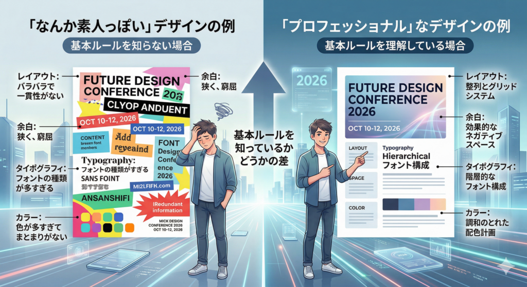デザインを始めたばかりのころ、「なんか素人っぽく見える」と感じたことはありませんか。